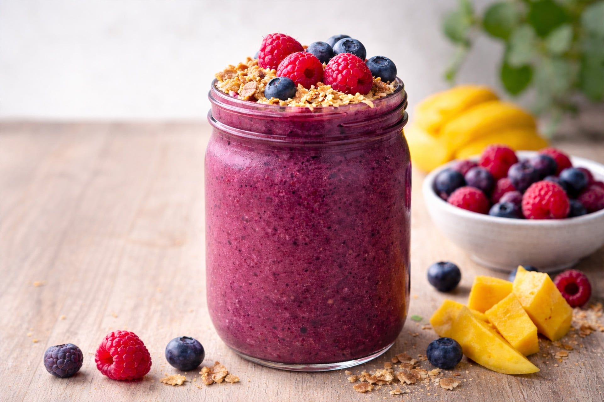Cremig, fruchtig und voller Power: Dieser Açaí-Mango-Berry Smoothie ist dein perfekter Frischekick – schnell gemacht und ideal für einen gesunden Genuss zwischendurch.